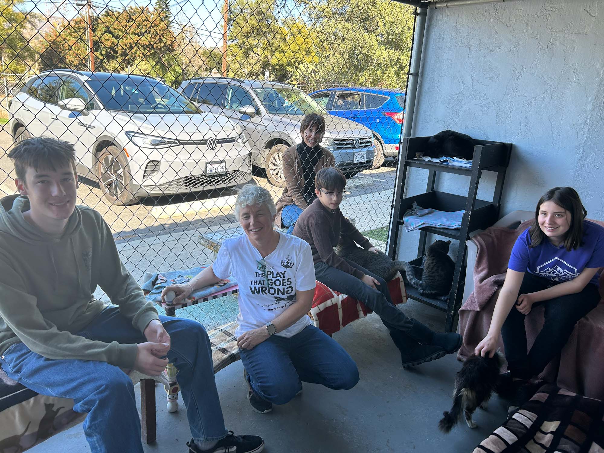 The Youth Group, lead by Claudia, volunteered at Friends of Cats, a no kill cat shelter and sanctuary center in East County. The group met for lunch and then help out at the shelter visiting with, grooming and playing with cats to ensure their socialization and to help new arrivals overcome relinquishment anxiety or depression.