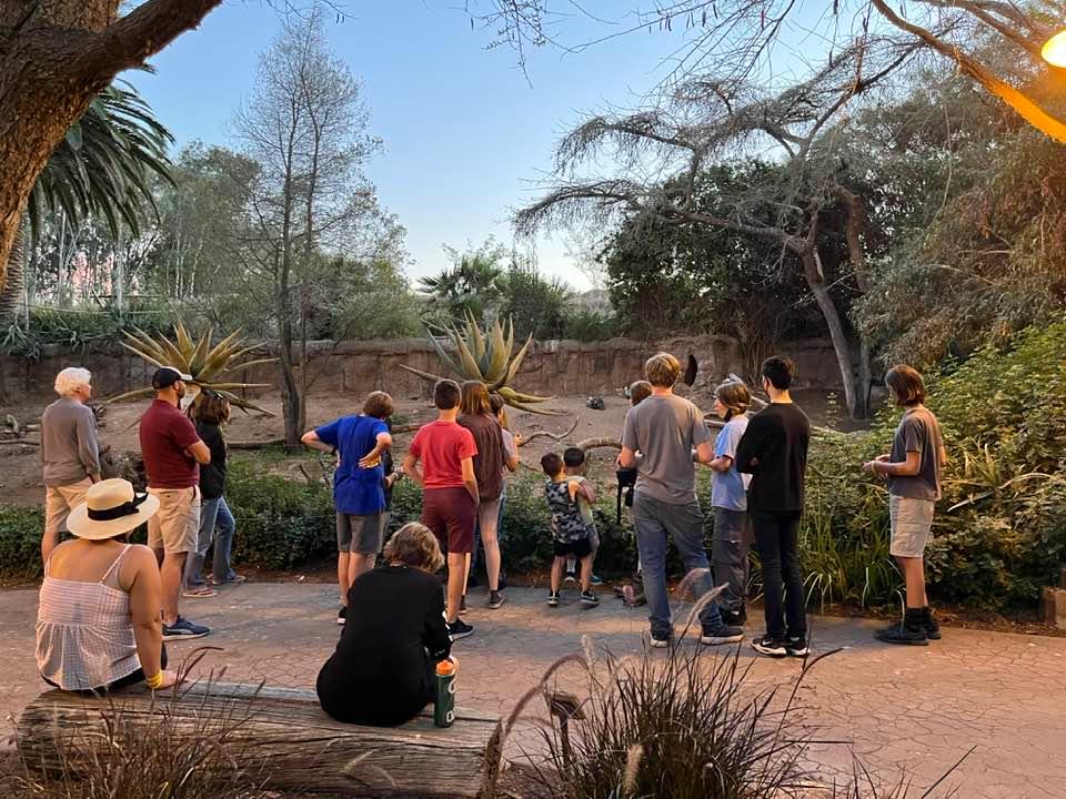 Twelve youth and 5 chaperones slept in tents just a few yards from the rhinos and elephants at the San Diego Safari Park. We enjoyed a unique opportunity to tour the park after dark and to watch the cheaters run before other park visitors arrived in the morning. It was spectacular.